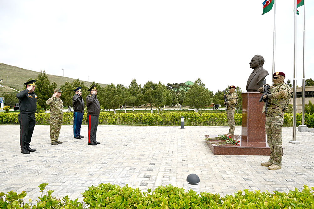 "Сначала были возложены цветы к бюсту Общенационального лидера Гейдара Алиева, установленному на территории воинской части, и к мемориальному комплексу, воздвигнутому в память о шехидах.