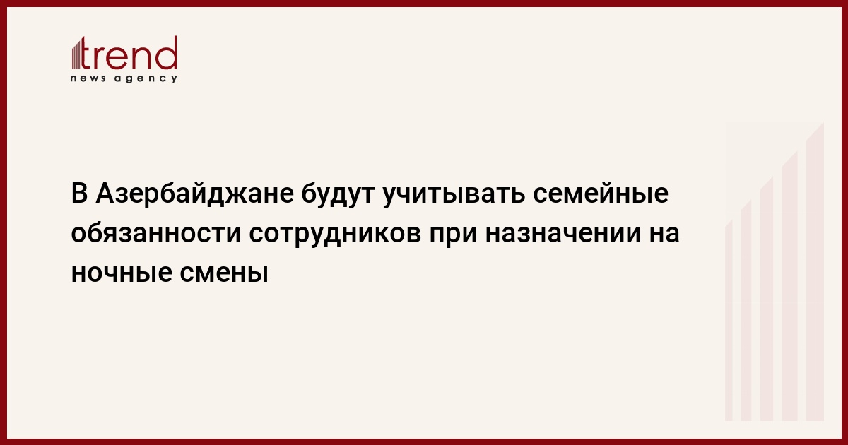 БАКУ/Trend/ - В Азербайджане при назначении сотрудников на работу в ночную смену будут учитываться их потребности, связанные с выполнением семейных обязанностей.