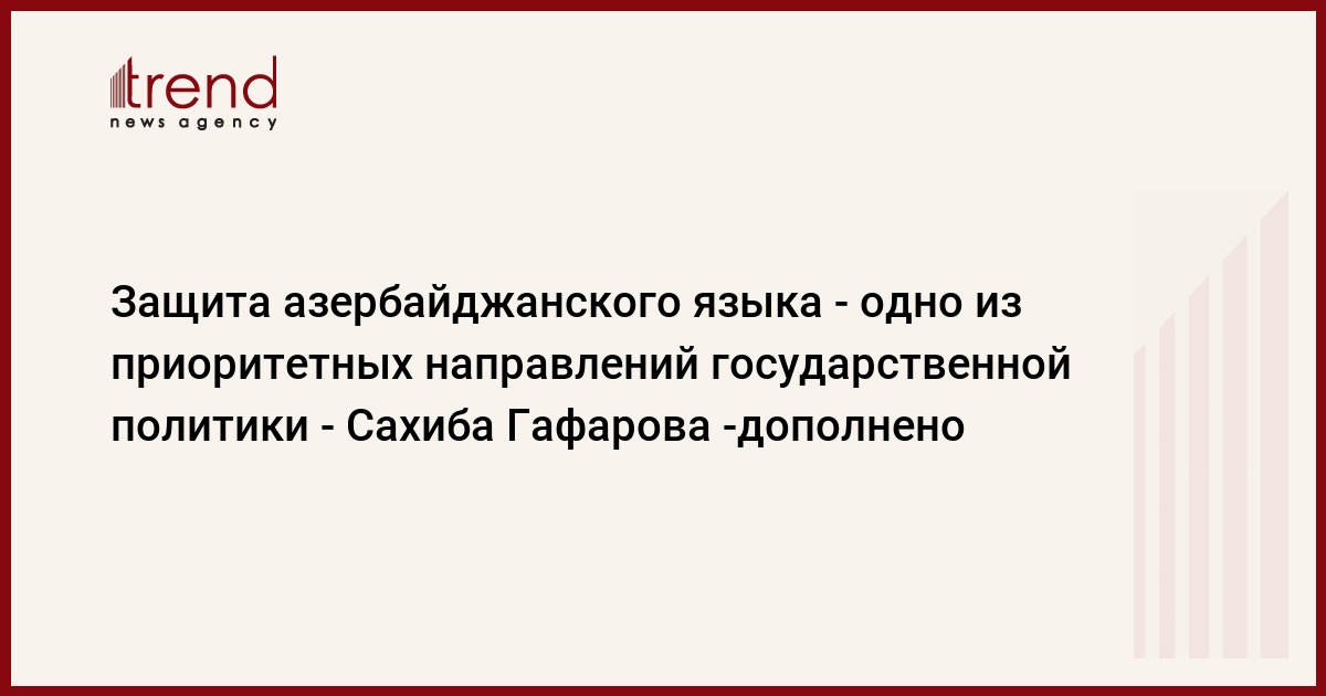 Как сообщает Trend, об этом заявила спикер Милли Меджлиса Сахиба Гафарова в ходе выступления в парламенте в рамках конференции на тему «Стратегия развития азербайджанского языка как государственного: текущее состояние и перспективы».