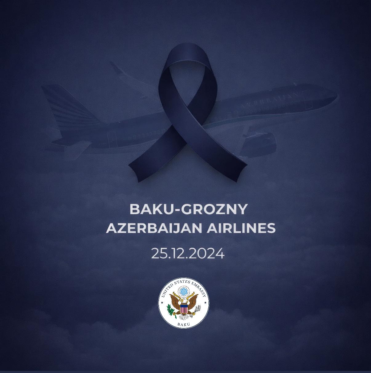 "Сегодня мы чтим память тех, кто погиб на борту самолета рейса J2-8243 "Азербайджанских авиалиний", и не забыли героизм капитана Игоря Кшнякина, пилота Александра Кальянинова и бортпроводницы Хокумы Алиевой. Принятые ими меры предотвратили гибель еще большего числа людей. От имени Соединенных Штатов Америки мы выражаем глубочайшие соболезнования родным и близким 38 погибших, а также передаем наилучшие пожелания выжившим в этой трагедии", - говорится в публикации посольства в аккаунте в социальных сетях.