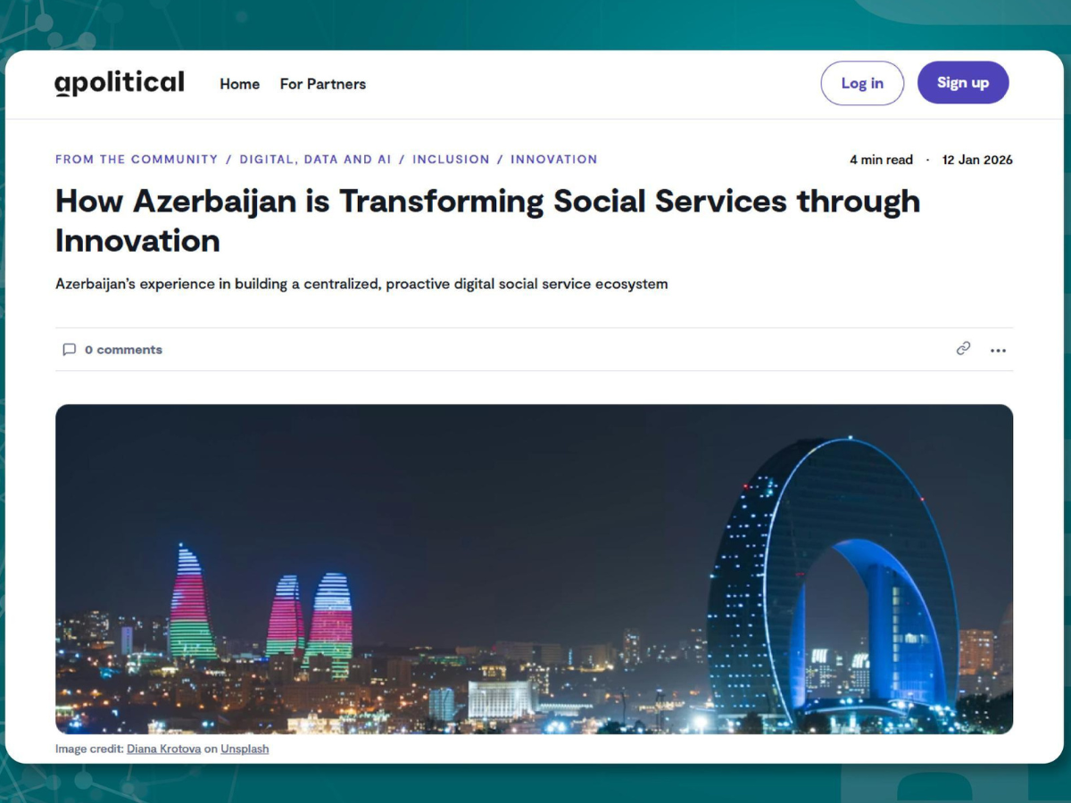 Как сообщили Trend в министерстве труда и социальной защиты населения Азербайджана, в статье отмечается, что инфраструктура социальных служб в Азербайджане была модернизирована с помощью цифровых платформ, что сделало ее более прозрачной, эффективной, доступной и ориентированной на граждан.
