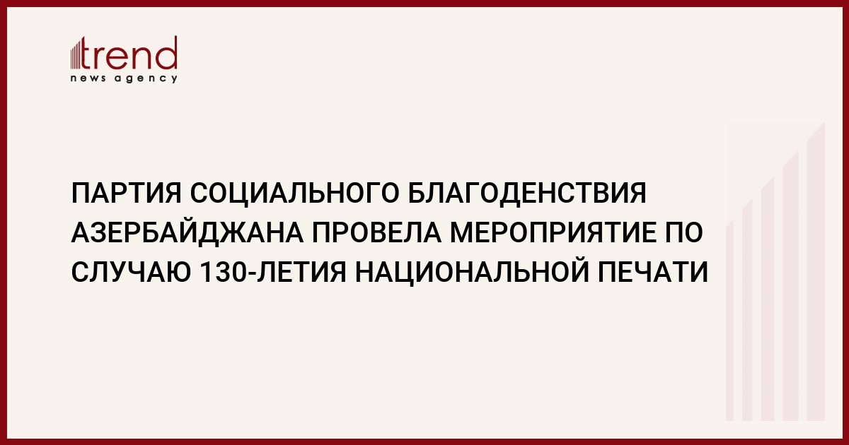 21 июля партия Социального благоденствия Азербайджана (ПСБА) провела "круглый стол", посвященный 130-летию национальной печати. Как передает Trend , в мероприятии наряду с руководством ПСБА приняли участие депутаты парламента и представители СМИ.