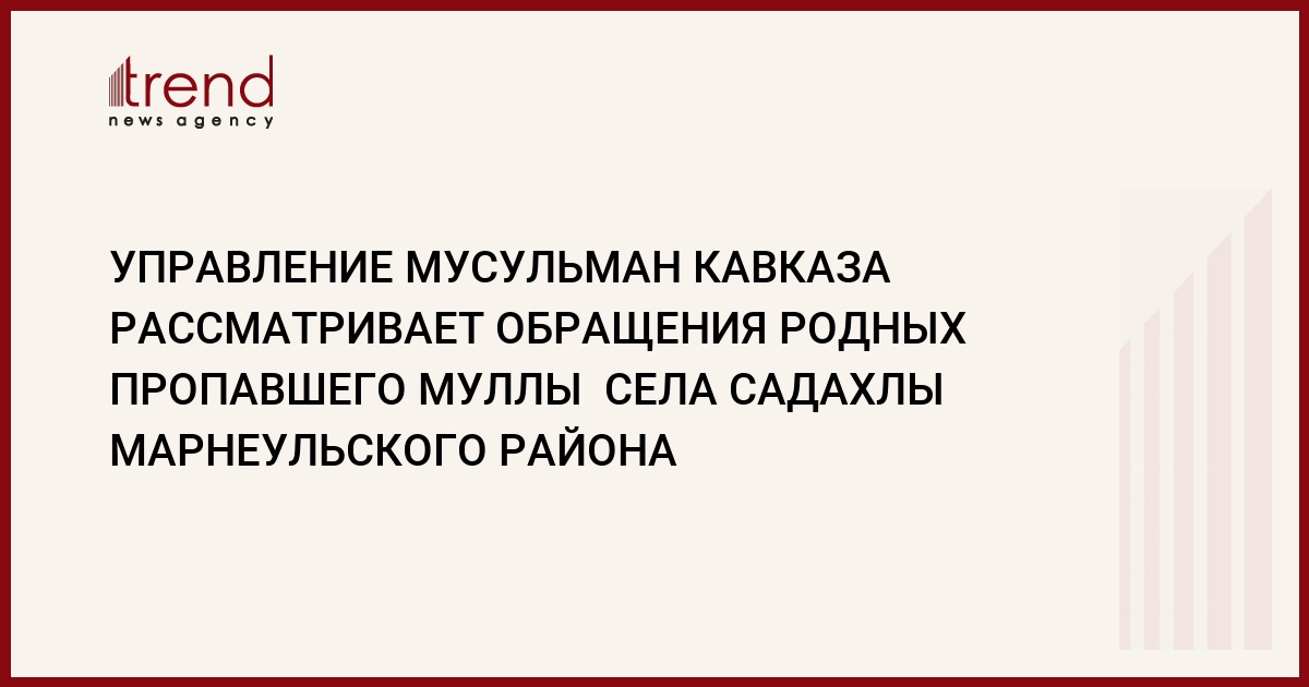 Управление мусульман Кавказа (УМК) рассматривает обращения родных пропавшего жителя села Садахлы Марнеульского района - компактного проживания азербайджанцев в Грузии. Об этом Trend сообщили в управлении.