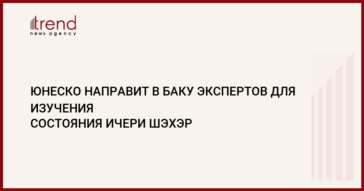 ЮHЕСКО направит в Азербайджан своих экспертов для изучения состояния историко-архитектурного комплекса "Ичери шэхэр". Об этом, как передает Trend , 26 августа сообщил журналистам генеральный директор ЮHЕСКО Коиширо Мацуура.