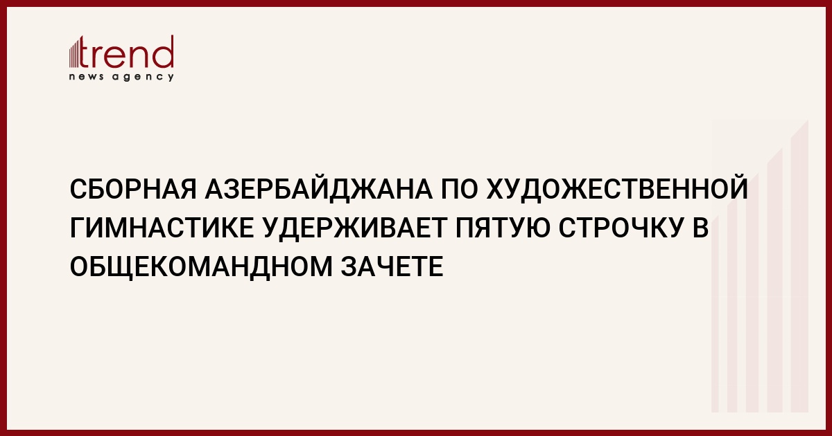 Сборная Азербайджана по художественной гимнастике продолжает удерживать пятое место в общекомандном зачете чемпионата мира, проходящего в эти дни в Баку.