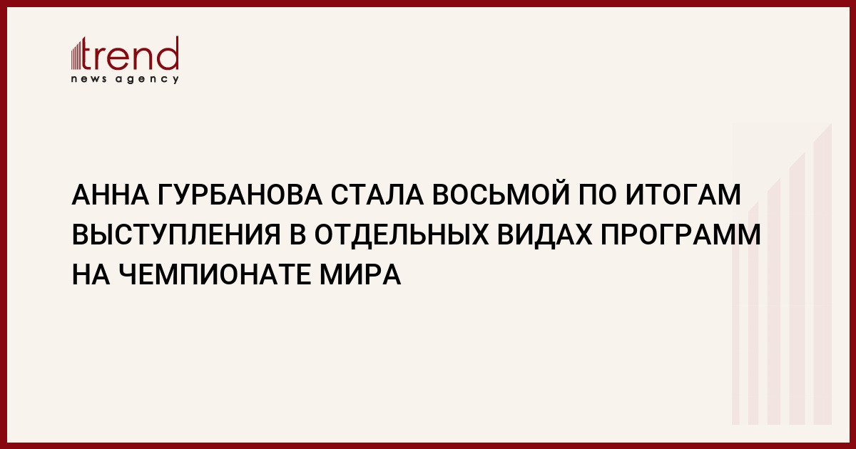 Азербайджанская гимнастка Анна Гурбанова заняла итоговое восьмое место по итогам выступления в отдельных видах программ на чемпионате мира, проходящем в Баку.