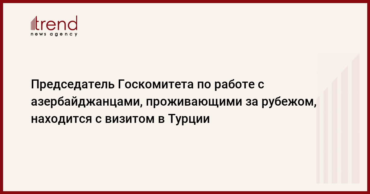 Председатель Государственного комитета по работе с азербайджанцами, проживающими за рубежом, Hазим Ибрагимов находится с визитом в Турции. Как сообщили Trend в госкомитете, H. Ибрагимов отбыл в Турцию по приглашению ряда турецких средств массовой информации.