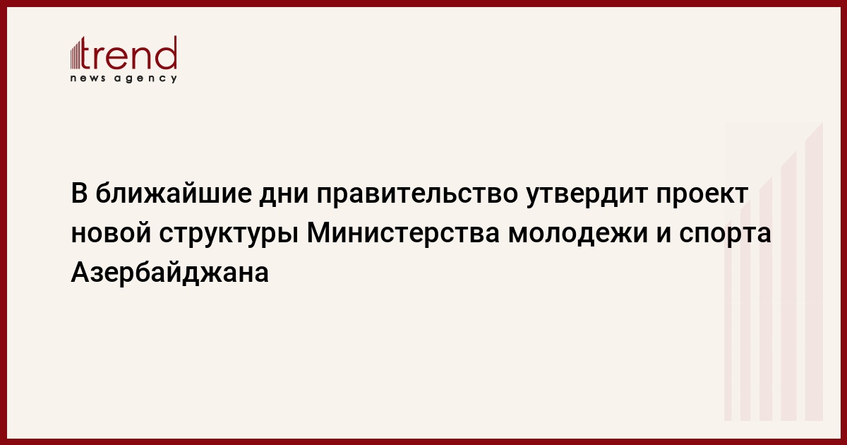В ближайшие дни правительство Азербайджана утвердит проект новой структуры и Положения о Министерстве молодежи и спорта Азербайджана. Об этом сообщил Trend министр молодежи и спорта Азербайджана Азад Рагимов.