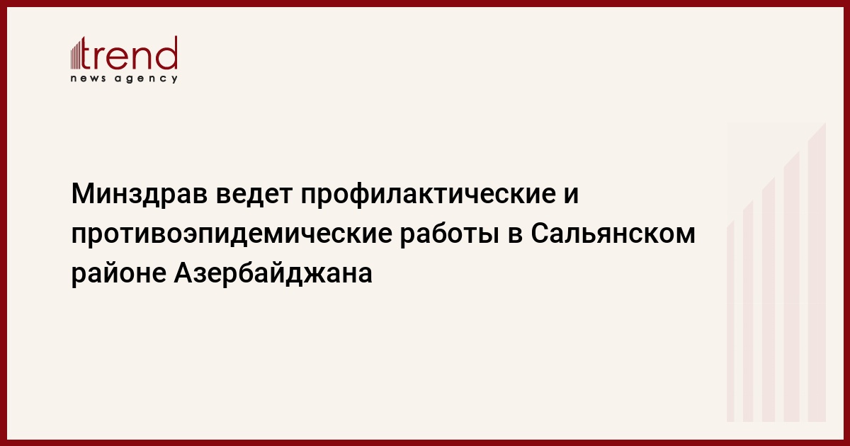 Министерство здравоохранения Азербайджана ведет профилактические и противоэпидемические работы в Сальяне. Об этом, как передает Trend , говорится в распространенном 6 марта пресс-релизе Минздрава.