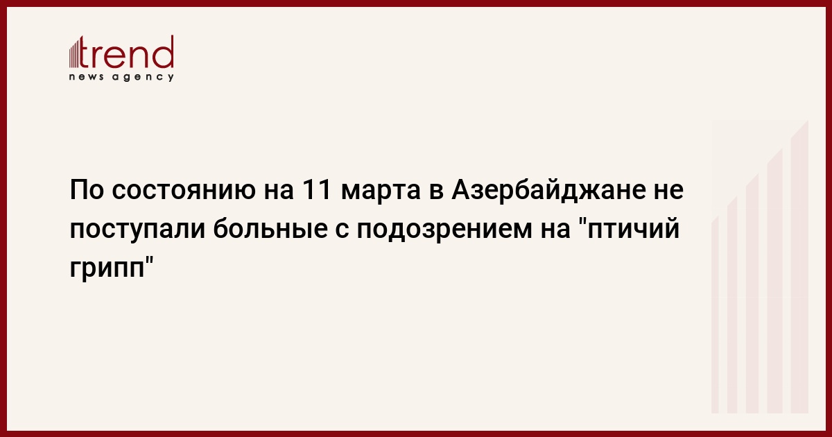По состоянию на 11 марта в Азербайджане не зарегистрированы новые больные с подозрением на вирус "птичьего гриппа", сообщила Trend глава пресс-службы Министерства здравоохранения Самайя Мамедова.