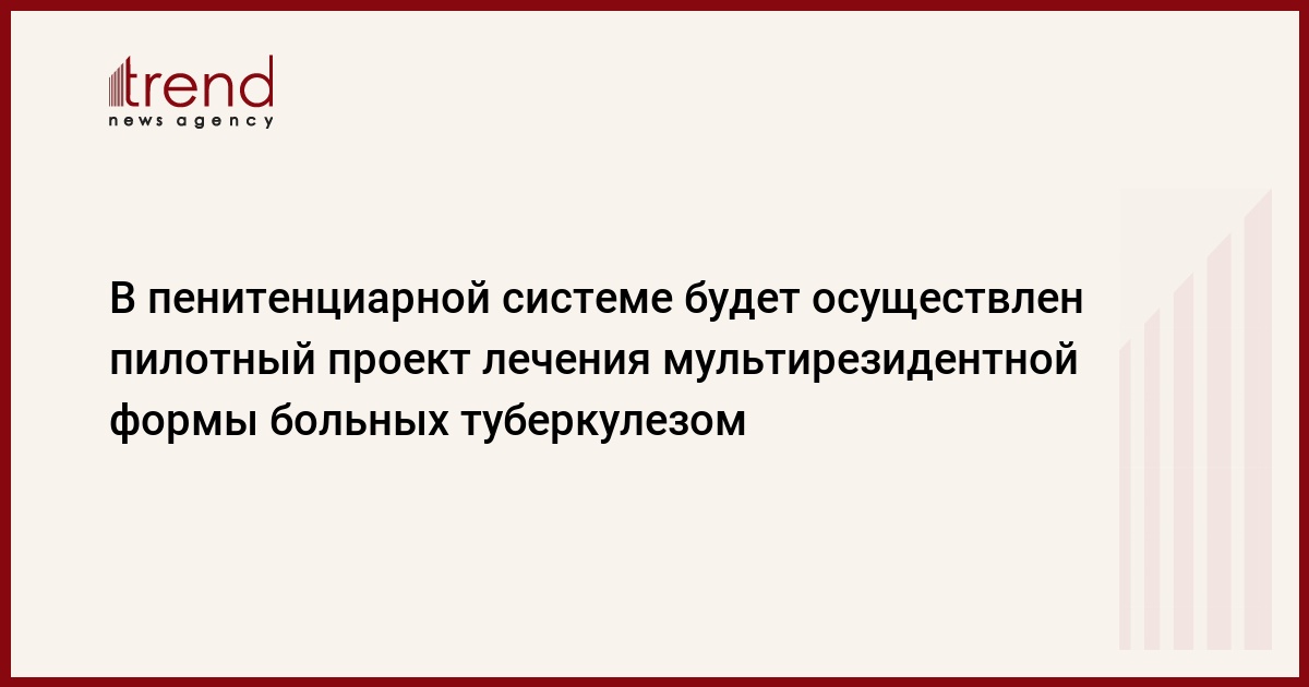 При технической поддержке Красного Креста и финансировании Глобального фонда в этом году Министерство юстиции приступает к реализации в пенитенциарной системе к новому этапу лечения больных туберкулезом. Как сообщил Trend начальник Управления здравоохранения министерства Рафаэль Мехтиев, впервые в Азербайджане будет осуществлено лечение мультирезидентной формы, которая является самой сложной формой туберкулеза. В пилотном проекте предполагается задействовать 80 больных из пенетициарной системы (всего их 100).