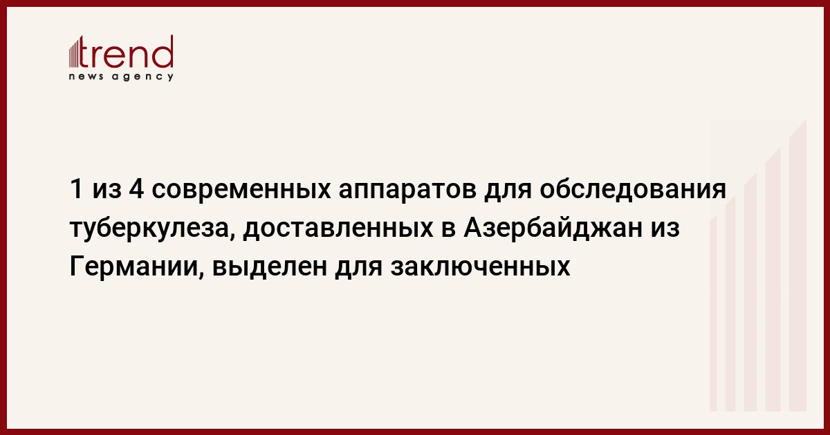 1 из 4 аппаратов для обследования туберкулеза, доставленных в Азербайджан из Германии, выделен для заключенных. Об этом Trend сообщил начальник Управления здравоохранения Министерства юстиции Рафаэль Мехдиев.