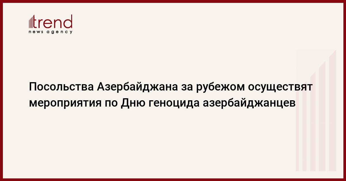 Министерство иностранных дел Азербайджана поручило посольствам страны за рубежом подготовить и осуществить ряд мероприятий в связи с очередной годовщиной Дня геноцида азербайджанцев, отмечаемого 31 марта. Об этом, как передает Trend со ссылкой на телеканал ANS, сообщил журналистам министр иностранных дел Азербайджана Эльмар Мамедъяров.