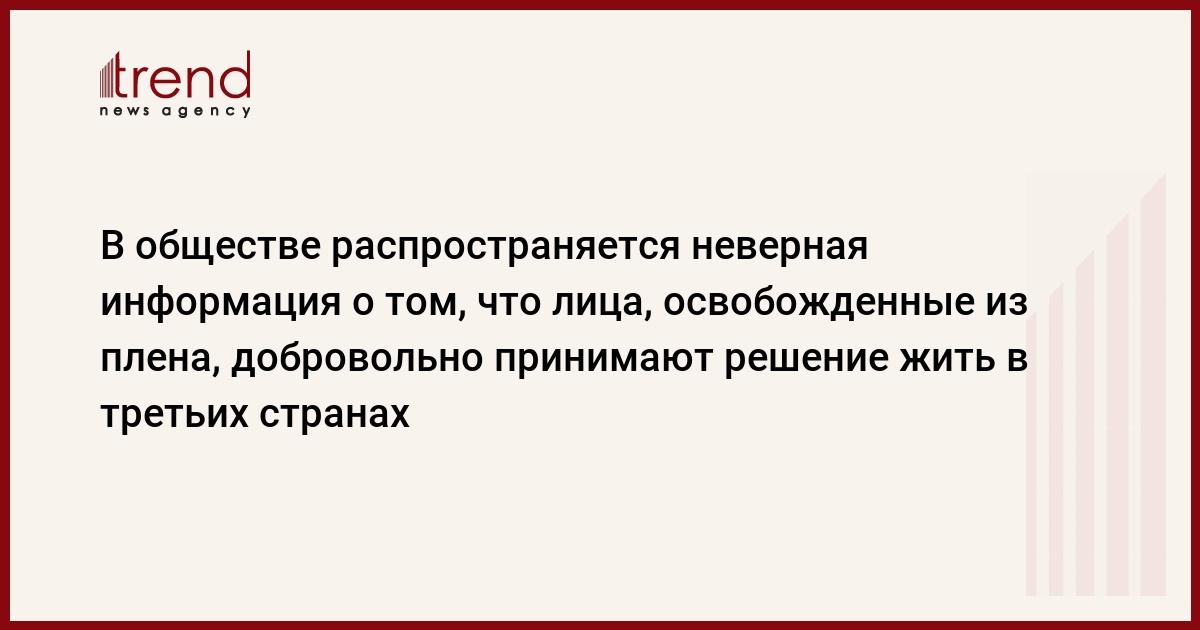 В информации сообщается, что вопросы, связанные с гражданами Азербайджана, попавшими в результате армянской агрессии в плен и отправленными в третьи страны, известны Госкомиссии и соответствующим госорганам, а также их родителям. Эти лица направлены в третьи страны по их желанию и на основе норм международного гуманитарного права. По факту направления пленных в третьи страны их родители со стороны Госкомиссии и госорганов не преследуются и не преследовались.