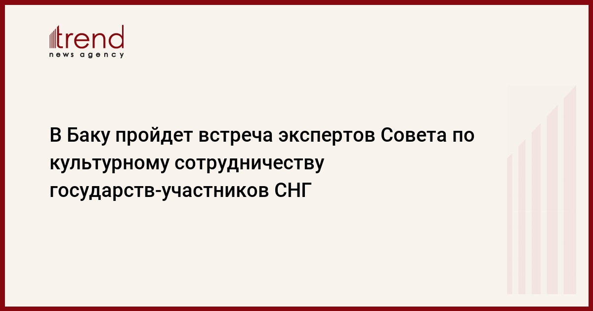 Как сообщили Trend в Министерстве культуры и туризма Азербайджана, на Бакинской встрече экспертов планируется обсуждение и согласование повестки предстоящего XXI заседания Совета по культурному сотрудничеству государств-участников СHГ, которое пройдет 9-10 октября в Баку.
