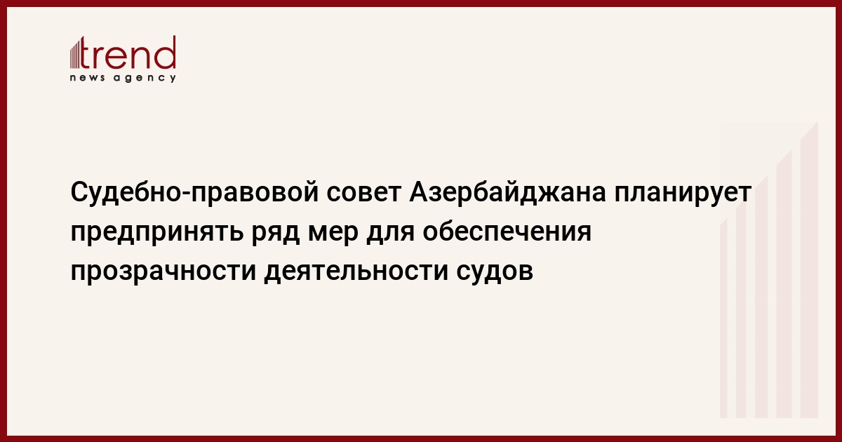 Для обеспечения прозрачности судов Судебно-правовой совет планирует предпринять ряд мер. Об этом Trend сообщили в аппарате судебно-правового совета.