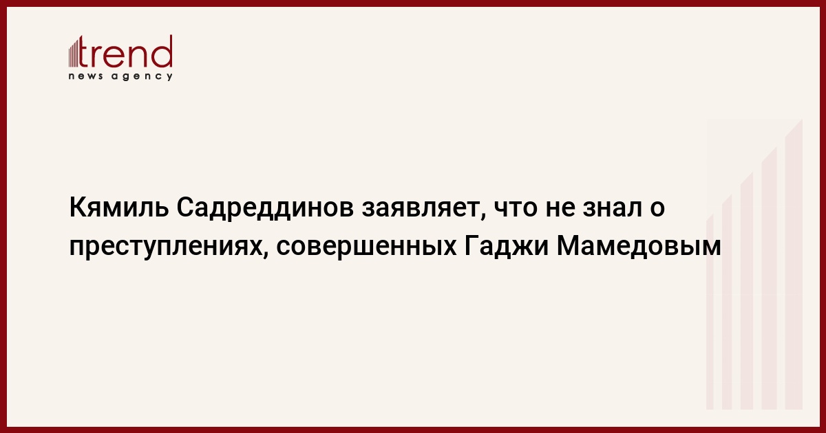 11 октября на суде по уголовному делу Гаджи Мамедова и возглавляемой им банды дал показания бывший начальник отдела по борьбе с имущественными преступлениями Главного управления уголовного розыска Министерства внутренних дел Кямиль Садреддинов. Он заявил, что не знал о преступлениях, совершенных Гаджи Мамедовым. Как передает Trend , судебное следствие по уголовному делу бывшего старшего оперативного уполномоченного Главного управления уголовного розыска МВД Гаджи Мамедова и возглавляемой им банды из 25 человек проводится в Азербайджанском суде по тяжким преступлениям под председательством судьи Али Сейфалиева.