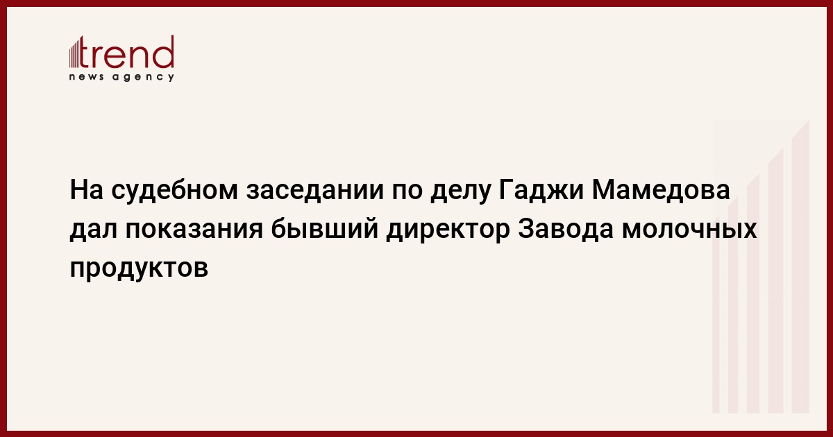 2 ноября на судебном заседании по делу Гаджи Мамедова и его банды в дал показания пострадавший, бывший директор Завода молочных продуктов Зейналабдин Бабаев. Как передает Trend , судебное следствие по делу бывшего старшего оперуполномоченного Главного управления уголовного розыска МВД Гаджи Мамедова и его банды проходит в Суде по тяжким преступлениям Азербайджана под председательством судьи Али Сейфалиева.