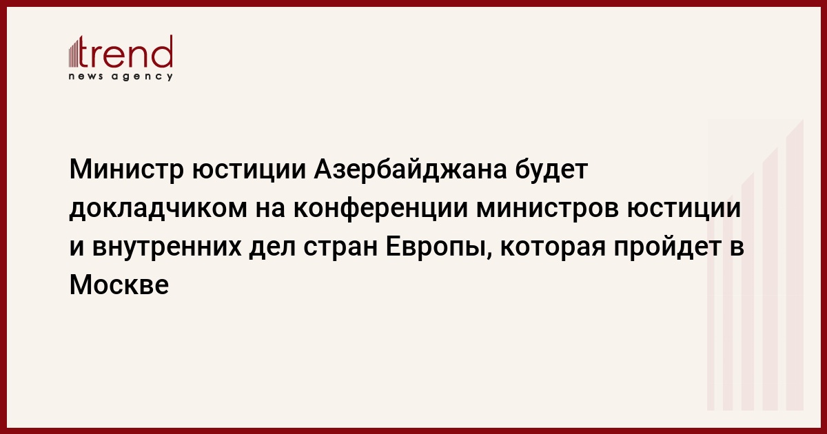 9-10 ноября министр юстиции Азербайджана Фикрет Мамедов будет докладчиком на конференции министров юстиции и внутренних дел стран Европы, которая пройдет в Москве. Об этом Trend сообщил руководитель управления международного сотрудничества Министерства юстиции Завер Гафарлы.