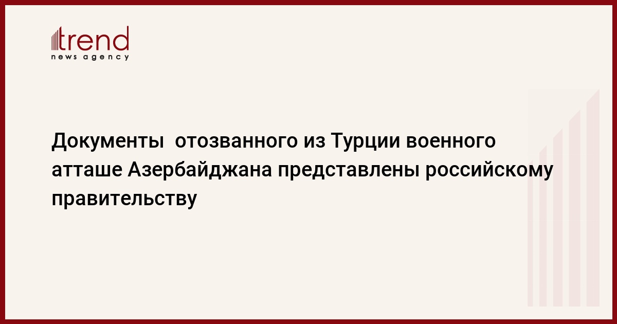 Документы отозванного из Турции военного атташе Азербайджана, полковника Бахыша Алекберова представлены российскому правительству. Об этом Trend сообщил военный эксперт Узеир Джафаров.