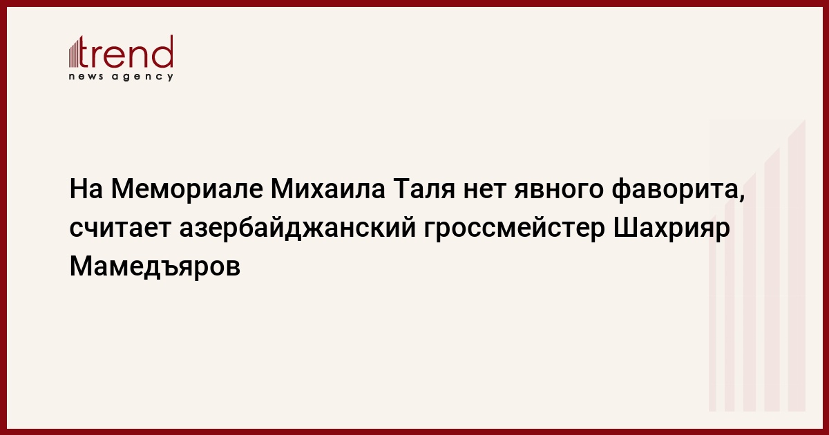 "На Мемориале Михаиля Таля нет явного фаворита и все шахматисты будут бороться исключительно за победу". Об этом заявил азербайджанский гроссмейстер Шахрияр Мамедъяров в интервью российским СМИ, комментируя шансы на успех его участников.