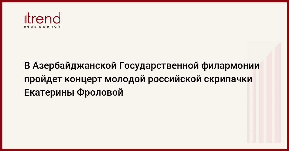 16 ноября в Азербайджанской Государственной филармонии им. М.Магомаева пройдет концерт лауреата международных конкурсов, стипендиатом Фонда скрипичного искусства (Москва), Международного благотворительного фонда В.Спивакова и Международного благотворительного фонда Н.Петрова молодой российской скрипачки Екатерины Фроловой, сообщает Trend .