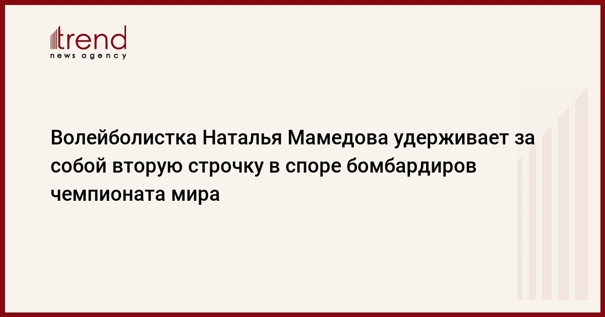 Азербайджанская волейболистка Наталья Мамедова обосновалась на втором месте в списке лучших бомбардиров чемпионата мира в Японии.