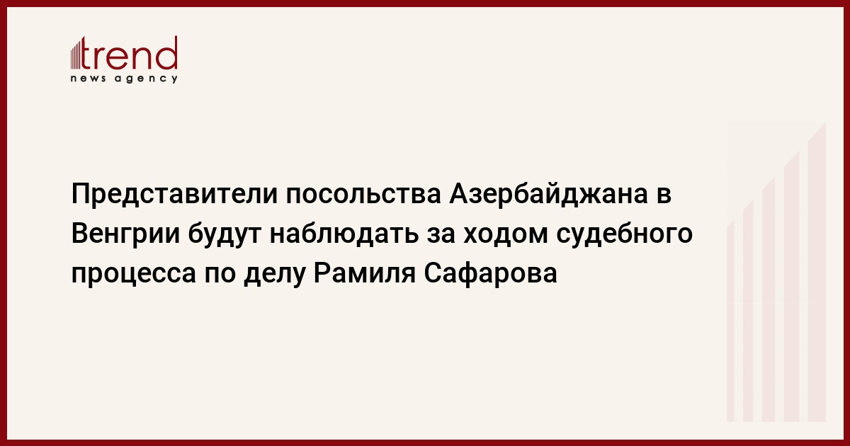 17 ноября представители посольства Азербайджана в Венгрии будут наблюдать за ходом очередного судебного процесса по делу офицера Вооруженных сил Азербайджана Рамиля Сафарова, который пройдет в Пештском районном суде в Будапеште. Об этом Trend сообщили в посольстве Азербайджана в Венгрии.