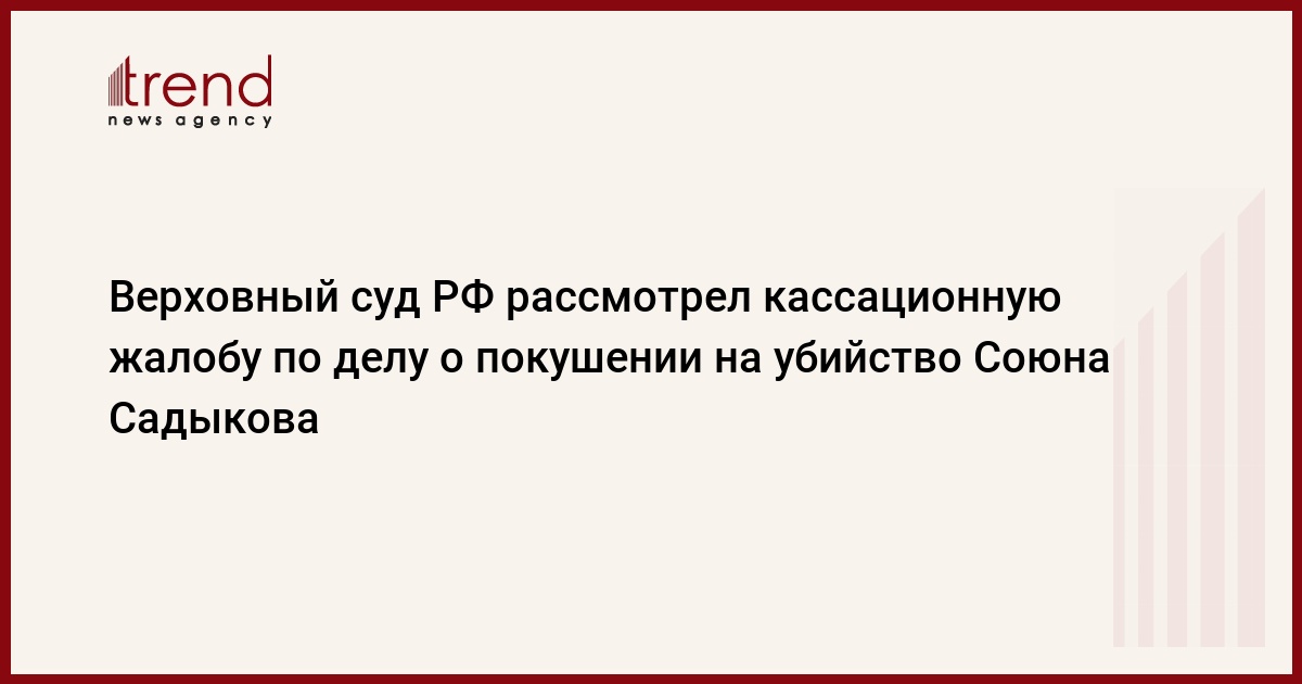 28 ноября в Верховном Суде России состоялось рассмотрение кассационной жалобы потерпевших Садыкова С.К. и Зуева М.И. и протеста прокуратуры на оправдательный приговор по уголовному делу о покушении на убийство главы Федеральной национально-культурной автономии азербайджанцев России Союна Садыкова.