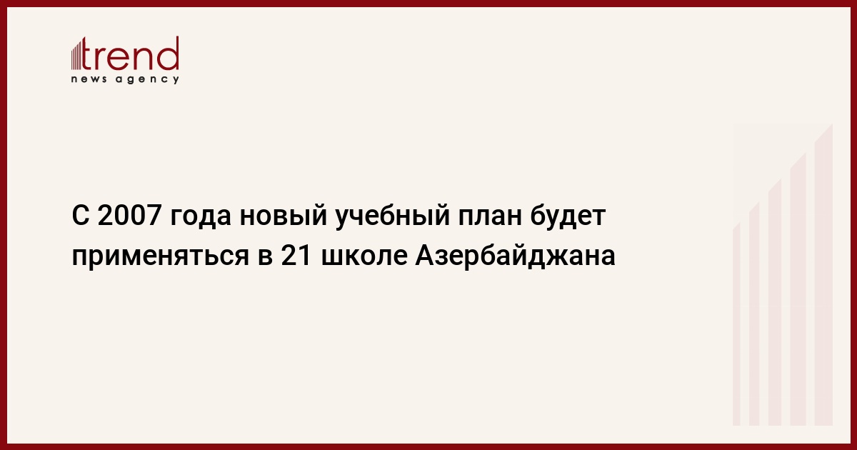 С 2007 года новый учебный план (куррикулум) будет применяться в 21 школе Азербайджана. Об этом сообщили Trend в Министерстве образования Азербайджана.
