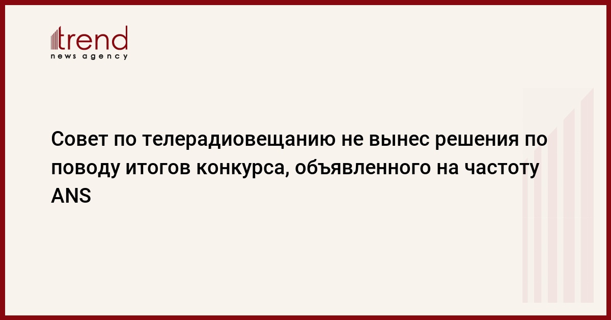 Национальный совет по телерадиовещанию Азербайджана не вынес никакого решения по поводу результатов конкурса, проведенного на частоту телеканала ANS. Об этом Trend сообщили в правовом и лицензионном отделе Совета по телерадиовещанию.