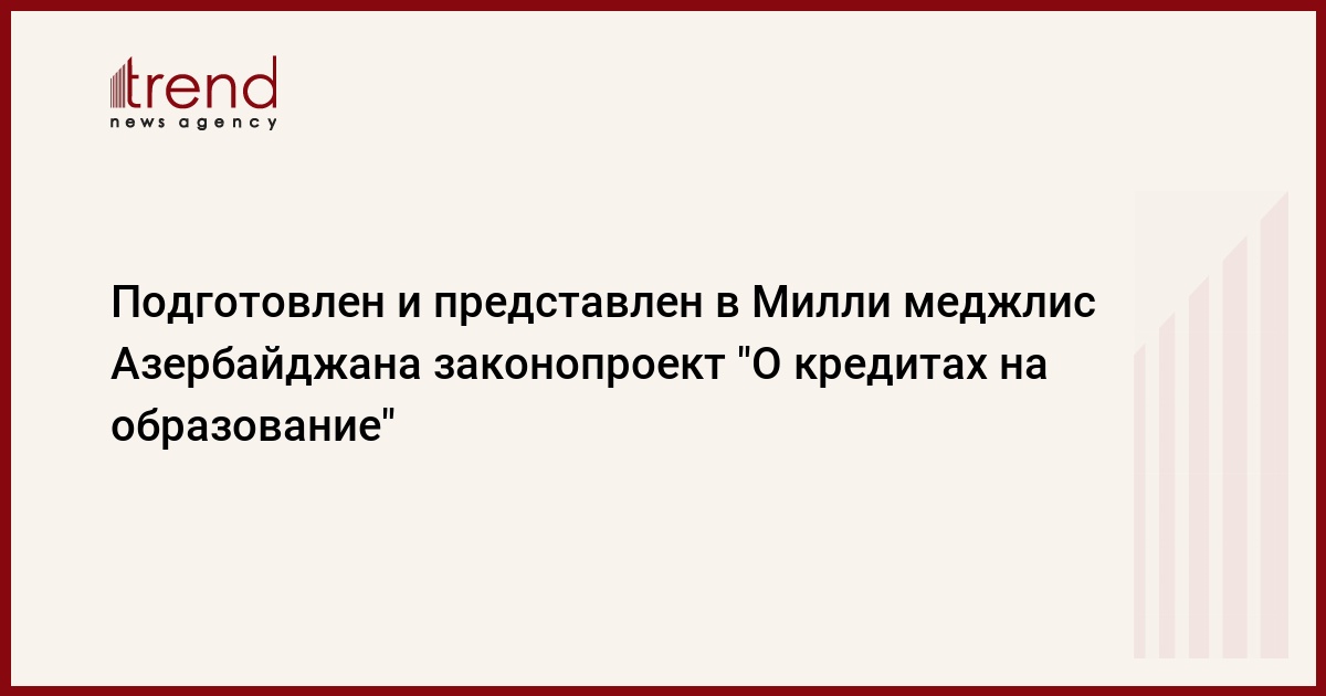 Подготовленный неправительственными организациями законопроект "О кредитах на образование" представлен в Милли меджлис. Об этом Trend сообщили в Ассоциации помощи развитию гражданского общества в Азербайджане.