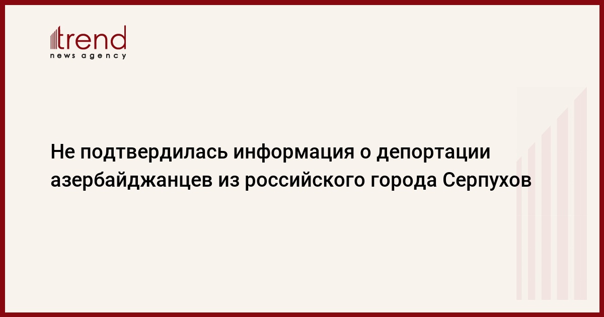 Информации о депортации 150 азербайджанцев из города Серпухов России, распространенные в некоторых азербайджанских газетах, не соответствуют действительности. Об этом Trend сообщил руководитель отдела по России Госкомитета по делам азербайджанцев, проживающих за рубежом Шакир Салимов.