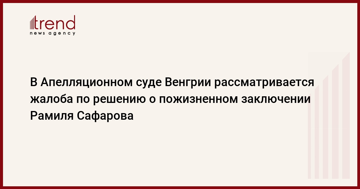 Азербайджан, Баку /корр. Trend З.Ибрагимхалилова/ В Апелляционном суде Венгрии под председательством судьи Пирошки Карпати рассматривается жалоба по решению суда первой инстанции от 13 апреля 2006 года о пожизненном заключении азербайджанского офицера Рамиля Сафарова за убийство армянского офицера Гургена Маргаряна.