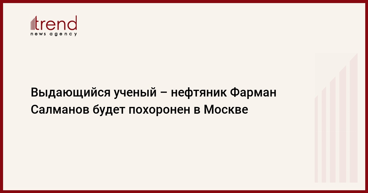 Азербайджан, Баку /корр. Trend С.Ильхамгызы/ В Москве 3 апреля будет похоронен вице - президент Всероссийского конгресса азербайджанцев, выдающийся ученый и госдеятель, известный нефтяник Фарман Салманов. Об этом сообщили во Всероссийском конгрессе азербайджанцев.
