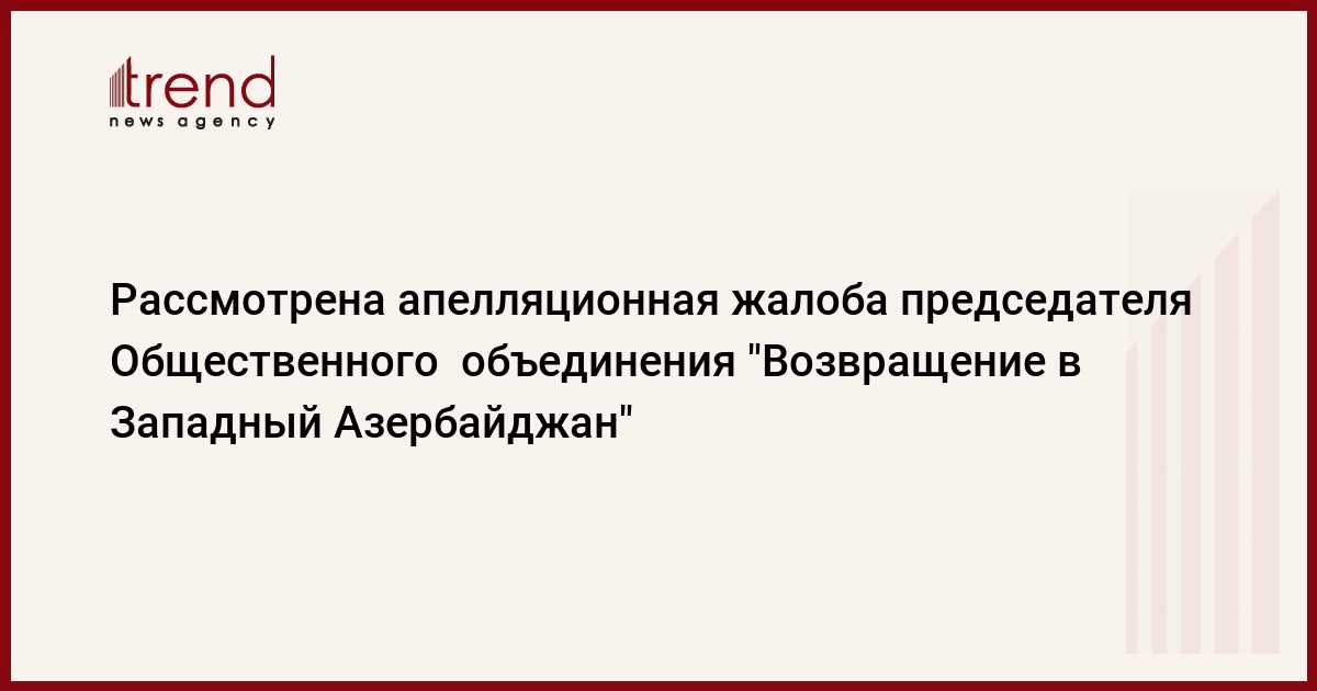 Азербайджан, Баку /корр. Trend К.Зарбалиева/ Сегодня в Апелляционном суде под председательством судьи Рамеллы Аллахвердиевой рассмотрена апелляционная жалоба председателя Комитета по защите прав экс-министра здравоохранения Али Инсанова и Общественного объединения "Возвращение в Западный Азербайджан" Ризвана Талыбова.