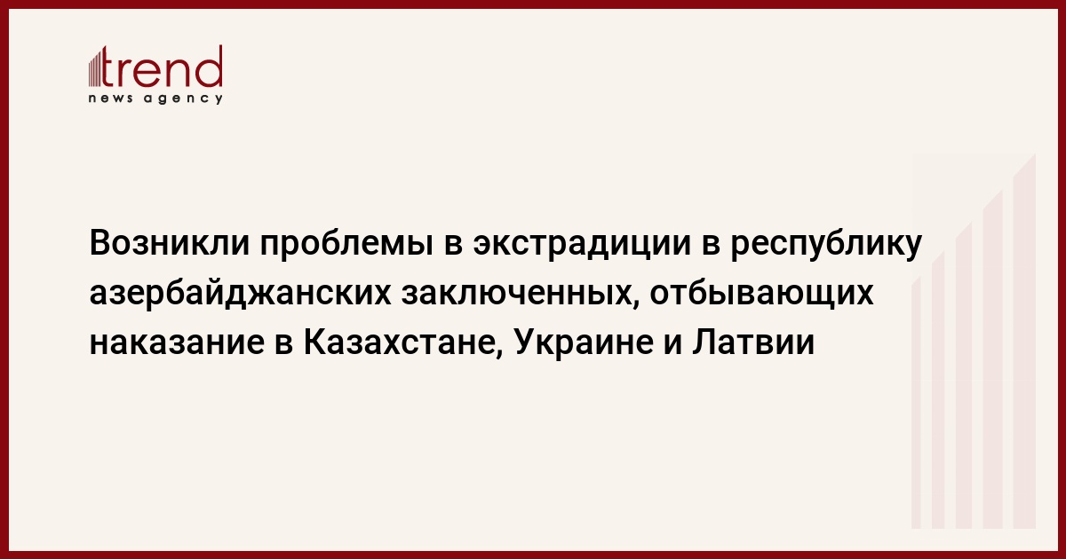 Азербайджан, Баку /корр. Trend К.Зарбалиева / Возникли проблемы в экстрадиции азербайджанских заключенных, отбывающих наказание в Казахстане, Украине и Латвии, сообщил руководитель Управления международного сотрудничества Министерства юстиции Завер Гафаров.
