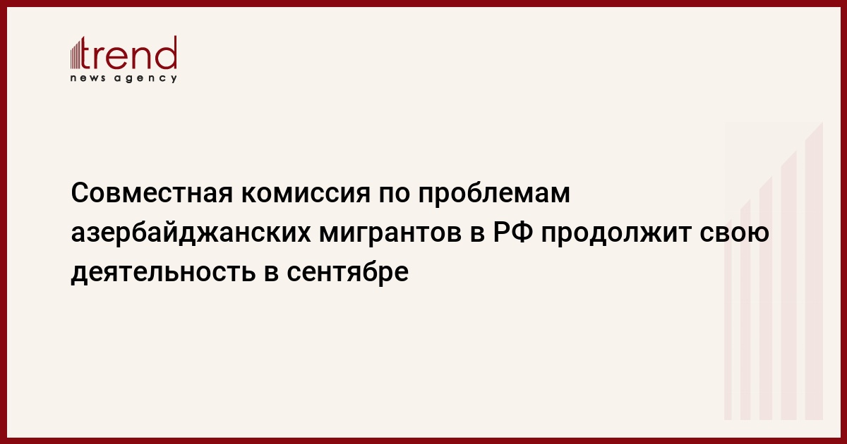 Азербайджан, Баку /корр. Trend С.Ильхамгызы/ Совместная комиссия азербайджанских диаспорских организаций с правительством РФ с целью оказания помощи в решении миграционных проблем азербайджанцам, проживающим в России, продолжит свою деятельность в сентябре. Об этом во вторник сообщил председатель Всероссийского азербайджанского конгресса (ВАК) Ильгар Гаджиев.