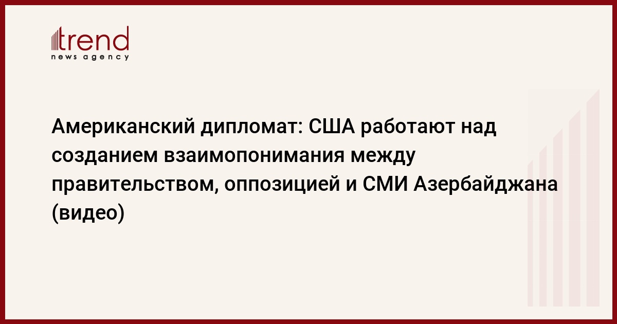 Азербайджан, Баку /корр. Trend А.Исмайлова/ США работают над тем, чтобы создать взаимопонимание между правительством, оппозицией и СМИ в Азербайджане, заявил в четверг в Баку советник госсекретаря США Мэтью Брайза.