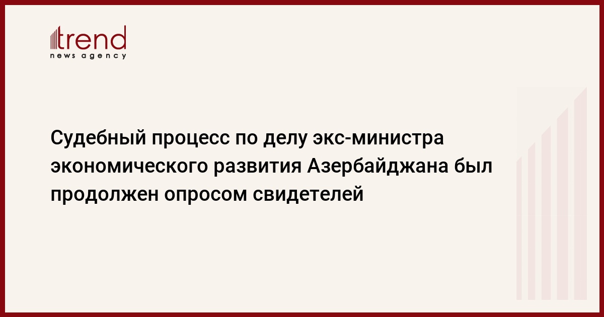 Азербайджан, Баку /корр. Trend Э.Джавадова / В среду в Суде по делам о тяжких преступлениях Азербайджана под председательством судьи Тофига Пашаева опросом гражданских ответчиков и свидетелей был продолжен судебный процесс по уголовному делу в отношении бывшего министра экономического развития Азербайджана Фархада Алиева, его брата, президента Группы компаний "Азпетрол" Рафика Алиева, а также остальных проходящих по данному делу 17 обвиняемых.
