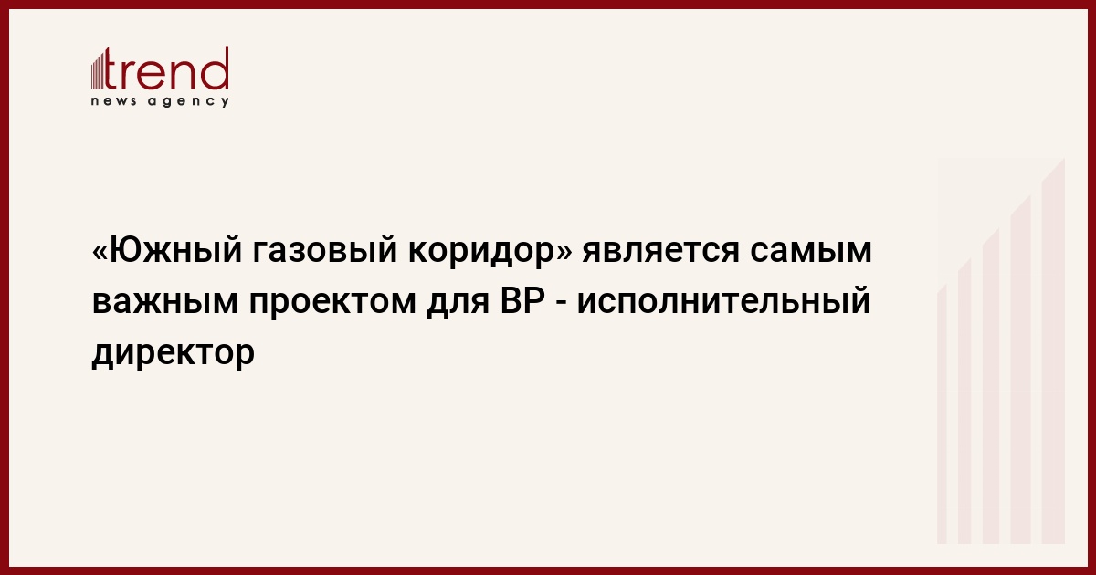 БАКУ /Trend/ - "Южный газовый коридор" является самым важным проектом для BP, сказал журналистам в четверг исполнительный директор BP по нефтепереработке Туфан Эргинбилгидж в рамках XXIII Всемирного энергетического конгресса в Стамбуле.
