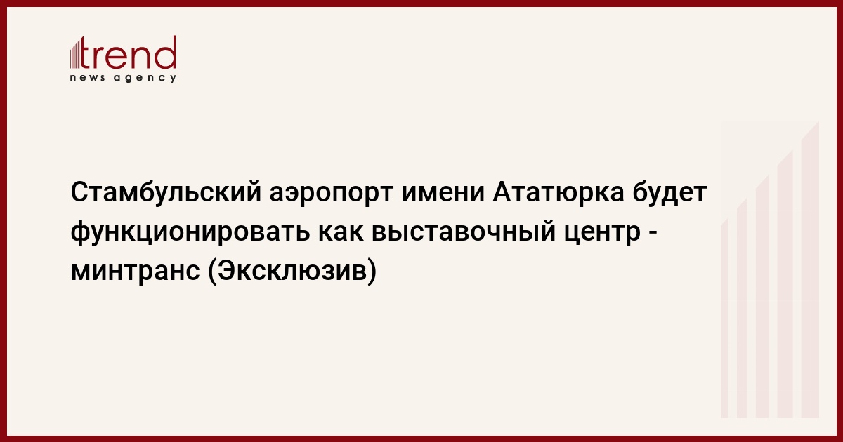 БАКУ /Trend/ - После сдачи в эксплуатацию третьего аэропорта в Стамбуле Международный аэропорт имени Ататюрка будет функционировать как выставочный центр. Об этом сказали Trend в пятницу в министерстве транспорта, судоходства и связи Турции.