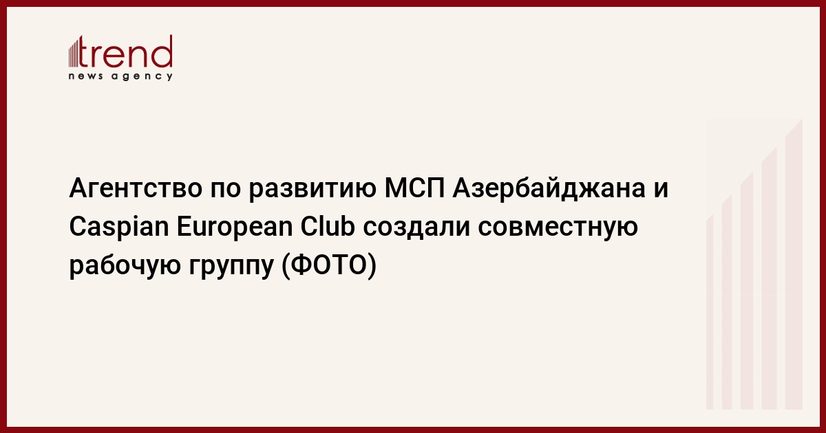 БАКУ /Trend/ - В Агентстве по развитию малого и среднего предпринимательства Азербайджана прошла встреча с членами правления Caspian European Club.