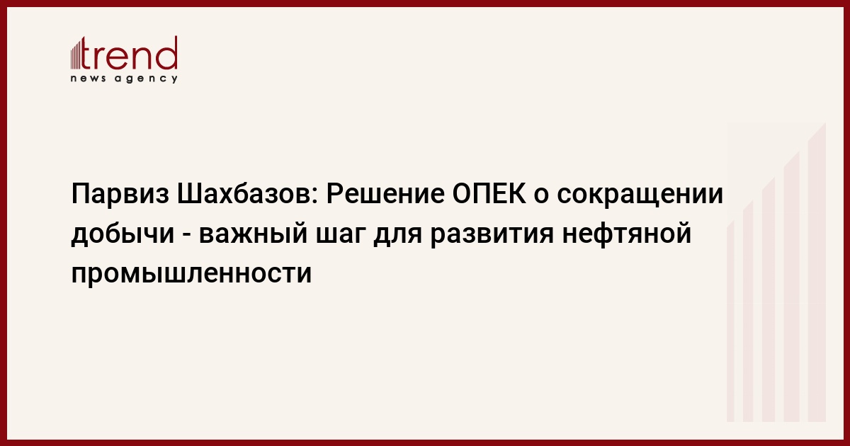 Об этом, как передаёт Trend, сказал министр энергетики Азербайджана Парвиз Шахбазов, комментируя решение картеля. Слова министра приводятся в сообщении Минерго, распространённом в пятницу.