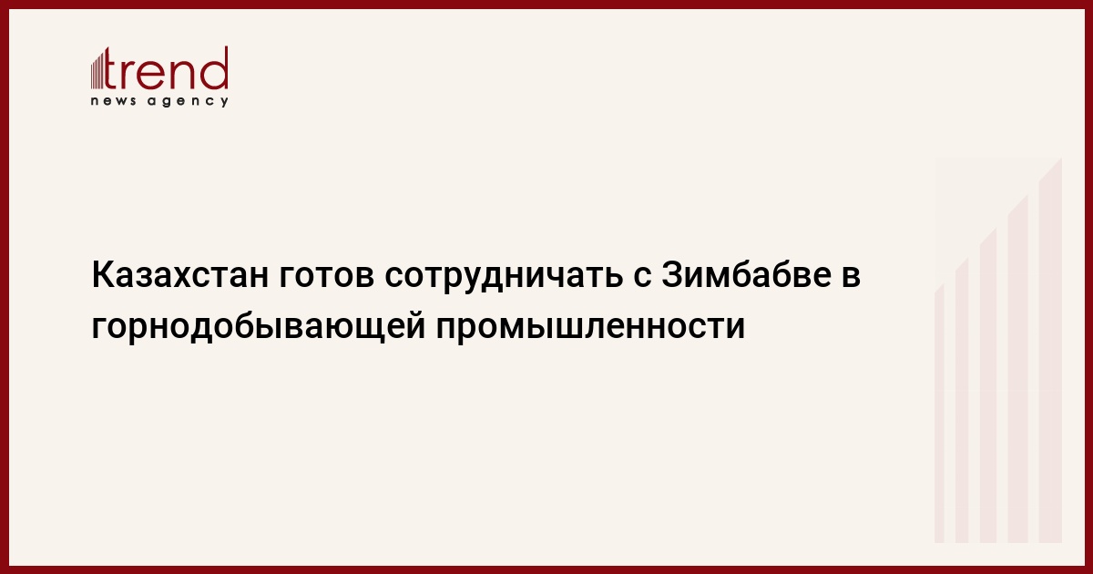 БАКУ /Trend/ - Казахстан готов сотрудничать с Зимбабве в горнодобывающей промышленности, а также в поставках сельхозпродукции, сообщает в понедельник Trend со ссылкой на казахстанские СМИ.