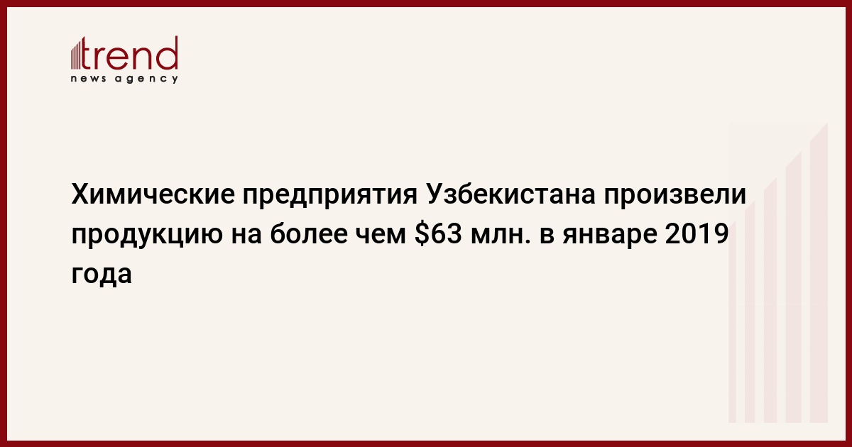 БАКУ/Trend/ - В январе 2019 года предприятиями АО «Узкимесаноат» произведено товарной продукции на сумму 535,5 миллиарда сумов, что превысило объем продукции, произведенной за аналогичный период предыдущего года на 22,7 процента. Об этом сообщает Trend со ссылкой на узбекские СМИ.