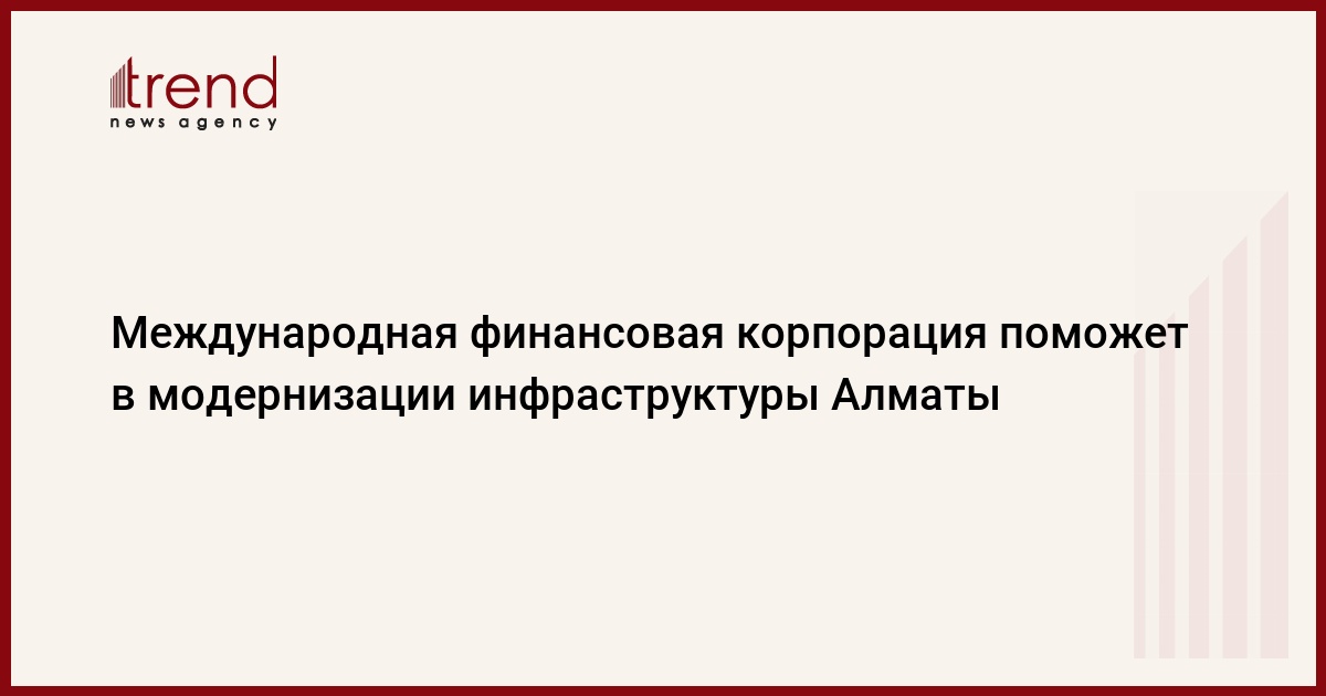 БАКУ /Trend/ - Международная финансовая корпорация (МФК) будет оказывать консультативные услуги по модернизации инфраструктуры казахстанского города Алматы, передает Trend в пятницу со ссылкой на пресс-службу администрации города.