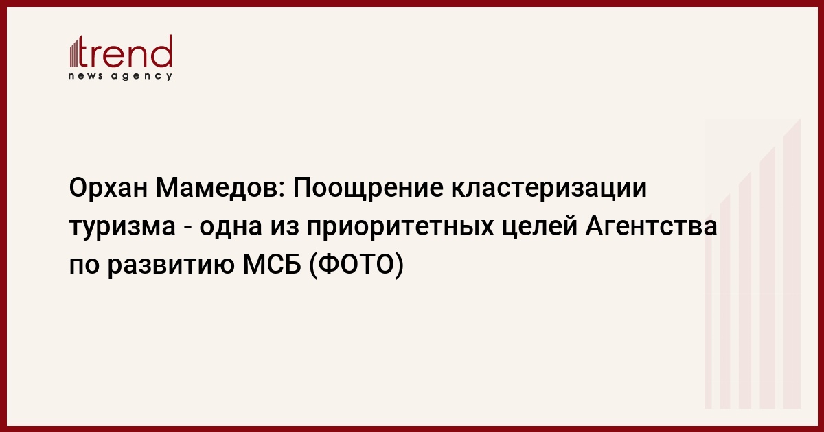 БАКУ /Trend/ - Обширное привлечение в сферу туризма предпринимателей в рамках механизма поддержки малого и среднего бизнеса и поощрение кластеризации туризма - одна из приоритетных целей Агентства по развитию малого и среднего бизнеса (МСБ) в Азербайджане.