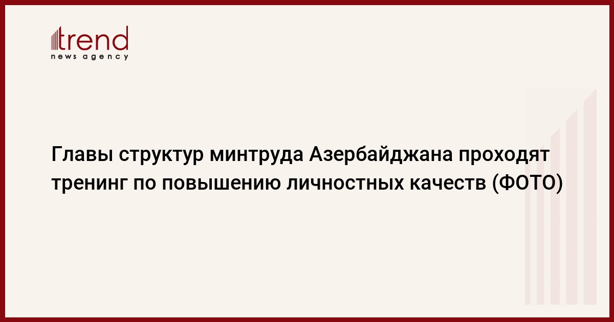 БАКУ /Trend/ - В рамках твиннинг-проекта «Поддержка министерства труда и социальной защиты населения в модернизации государственных служб занятости» проводится тренинг на тему «Повышение личностных качеств».