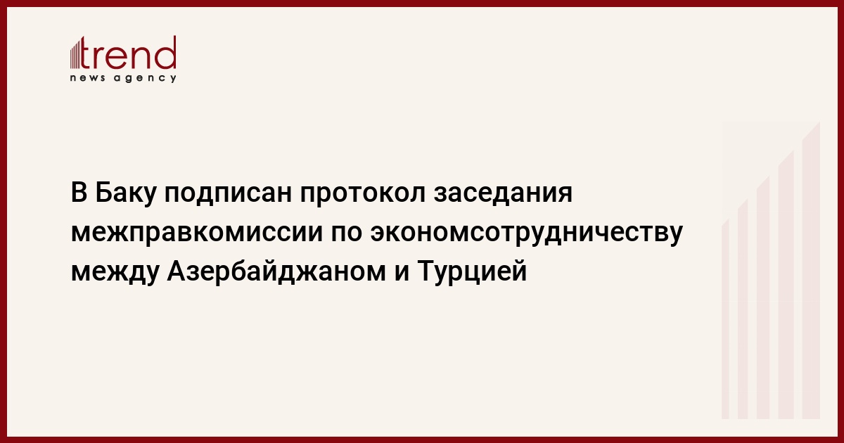 БАКУ /Trend/ - В Баку подписан протокол восьмого заседания совместной межправительственной комиссии по экономическому сотрудничеству между Азербайджаном и Турцией, сообщает в понедельник Trend.